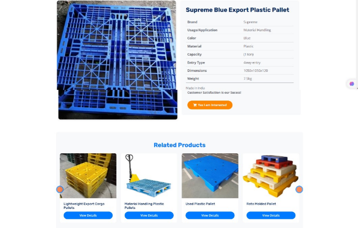 his screenshot shows a single product detail page featuring technical specs and a horizontally scrollable related products section. I customized the layout, styling, and functionality as part of the co-development process.